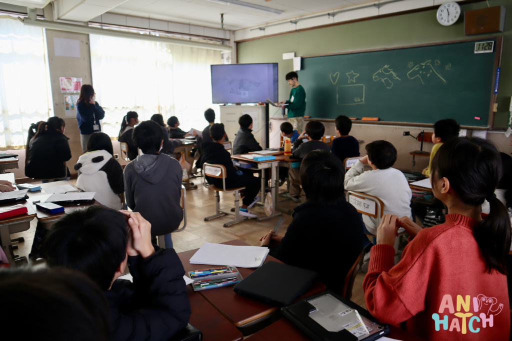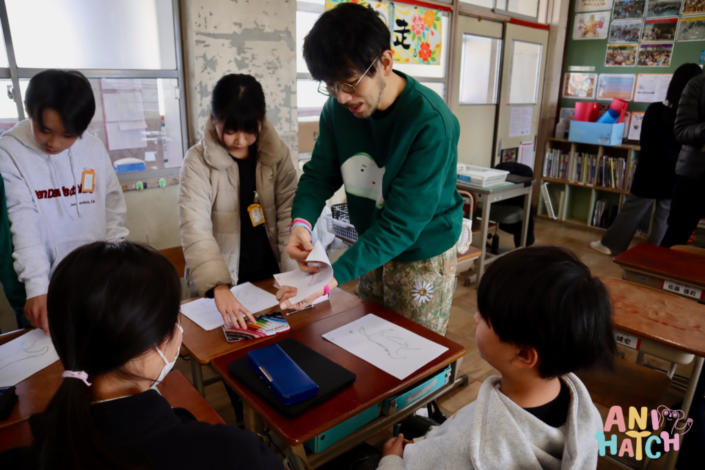 The day began in the audio-visual room with an introductory session for all classes. During the lecturer's self-introduction, he showcased some of his professional work, drawing loud cheers from the children as they witnessed the intricate movements. Mr. Saito also gave a live drawing demonstration, explaining how to convey specific "impressions" through art and video.